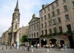 Edinburgh's Royal Mile in the Old Town - the city's most popular tourist street. The Mile runs from the Castle Esplanade to the Palace of Holyroodhouse, encompassing the Lawnmarket, the High Street, and Canongate. Don't forget the side streets of Victoria Street, the West Bow, Candlemaker Row, Grassmarket and the West Port. These delightful areas are rich in unusual shops, pubs, restaurants and cafes. During the Edinburgh Festival Fringe, the High Street becomes crowded with tourists, entertainers and buskers.